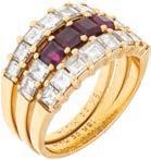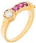 21• ANILLO CON RUBÍES Y DIAMANTE EN ORO BLANCO DE 18K