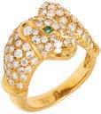 10• CHURUMBELA CON ESMERALDAS Y DIAMANTES EN ORO BLANCO DE 18K