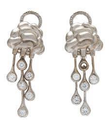 13• PAR DE ARETES CON DIAMANTES EN ORO BLANCO DE 18K