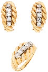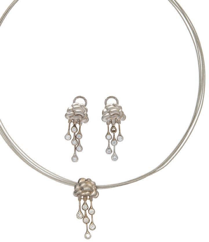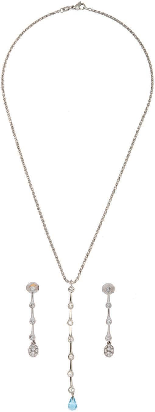 12• GARGANTILLA Y PENDIENTE CON DIAMANTES EN ORO BLANCO DE 18K