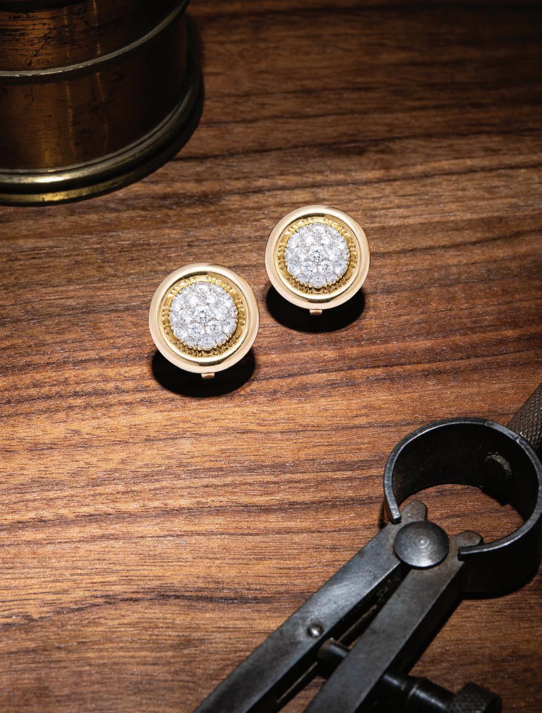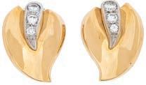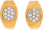 18• PAR DE BROQUELES CON DIAMANTES EN ORO BLANCO Y AMARILLO DE 18K