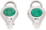 20• PAR DE ARETES CON ESMERALDAS Y DIAMANTES EN ORO BLANCO DE 18K
