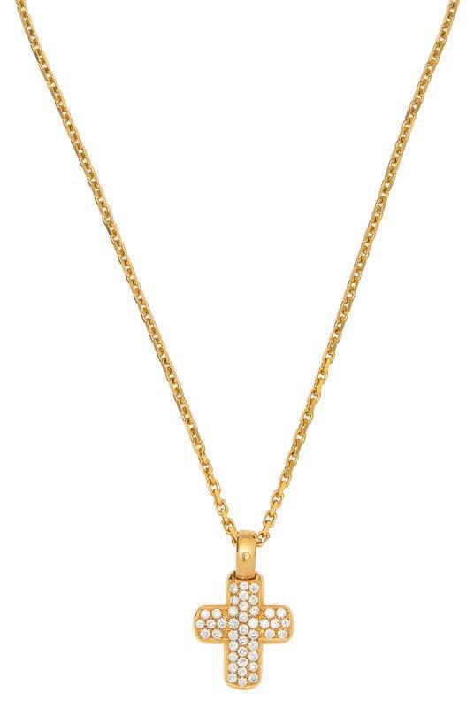 1• GARGANTILLA Y CRUZ CON DIAMANTES EN ORO BLANCO DE 18K