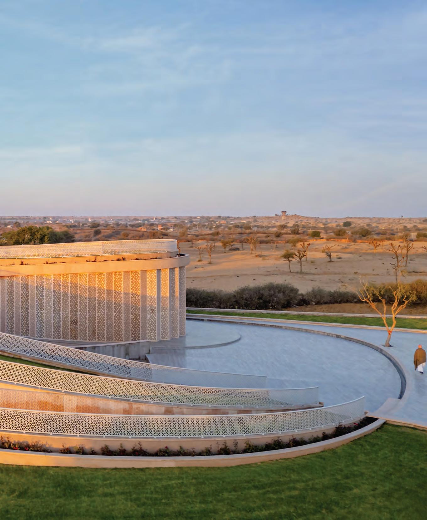 700,000 annual visitors and house up to 7,000 residents, making it a bustling hub of activity. Led by a consortium of international architecture firms, including Aedas, the design of Trojena Ski Village represents a bold departure from traditional ski resort typologies. Aedas’ innovative approach challenges conventions, envisioning a superstructure that integrates multiple levels of mobility and connection vertically, rather than horizontally. “‘For millennia, ski villages have had the same formula with multiple plots and buildings connected by roads. We challenged this convention by asking what if the village could be a building. This led us to dream up a superstructure that has the scale of a village but with all the connections and mobility happening vertically across several levels”, said Ignacio Gomez, Aedas’ Global Design Principal. The resort’s multi-level activation promises visitors a seamless tran-