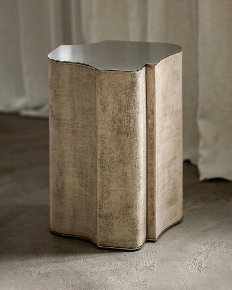 The new Muse screen, created by Draga&Aurel features Aurel’s painting in a printed organza which during movement seems to reproduce the gesture of painting. The Nubia console by Hagit Pinconvic is a monolithic structure that is akin to a contemporary totem. Similarly, Matteo Cibic’s Siona bar cabinet enhances the singularity of curved forms and sinuous volumes through the skillful combination of materials such as brushed metal and lacquered wood.