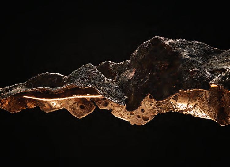 ro Lipparini, Marco Piva, Draga&Aurel, Studiopepe, m2atelier, and new visions of artists capable of interpreting Visionnaire’s artdesign DNA, such as Matteo Cibic, Naqsh collective, CaCO3, Michele Astolfi, Gupica, and Hagit Pincovici. The mural – Shawl AlNada is created by Naqsh collective for their inuagral collaboration with Visionnaire. This imposing work, 4 meters in length, is a carved wooden panel with engravings and three-dimensional symbols, enriched by the insertion of brass elements.
