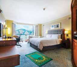 The hotel has 688 guestrooms and suites, all of which are decked out in neutral, stately furnishings for classic luxury. Muslim guests will be pleased to find a Qibla directional sign, a copy of the Quran, prayer mats, and bidets in the room should they need them- and separate male and female areas with special prayer facilities can be arranged for group usage.