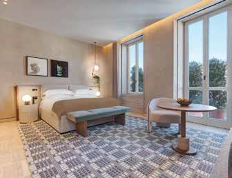 and homely all-day dining restaurant that provides a social setting by day, and a more sophisticated dining destination by night. An open kitchen, barista counter, and a gelateria tucked inside (where guests benefit from daily free ice-cream) are all designed to encourage connection and community. Upstairs, NOTOS is the new addition to the culinary scene at the hotel, and will undoubtedly become one of Rome’s most alluring rooftop dining destinations. Here, the cuisine is as sublime as the panoramic city views, with low-lying lounge seating, bar tables, and restaurant seating all designed for balmy alfresco evenings.