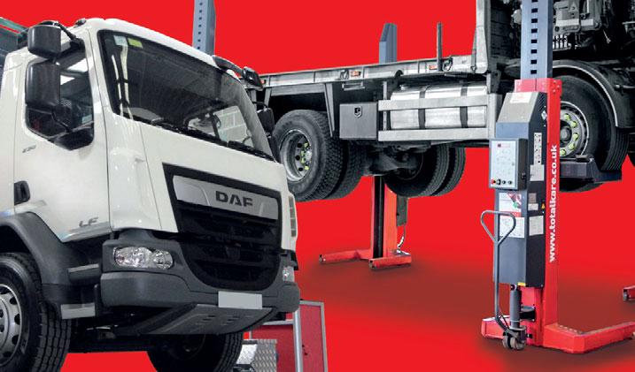 To maximise space elsewhere in the workshop, UK Truck and Plant Group chose Totalkare’s two-post lift as a fixedposition lifting solution for all LCVs. This type of lift has a range of capacities up to 7,000kg, the two lifts installed at
