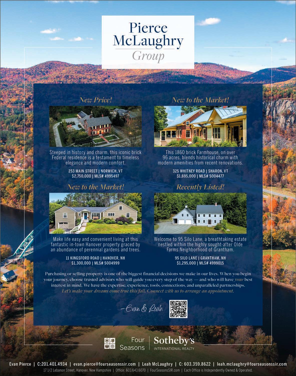 KEEP US POSTED. Here in Hanover wants to hear from readers. Correspondence may be addressed to: Letters to the Editor, Here in Hanover, 135 Lyme Road, Hanover, NH 03755. Or email us at: dthompson@ mountainviewpublishing.com. Advertising inquires may be made by email to rcfrisch1@ comcast.net. Here in Hanover is published quarterly by Mountain View Publishing, LLC ©2024. All rights reserved. Reproduction in whole or part is strictly prohibited. Here in Hanover accepts no responsibility for unsolicited manuscripts, artwork, or photographs.