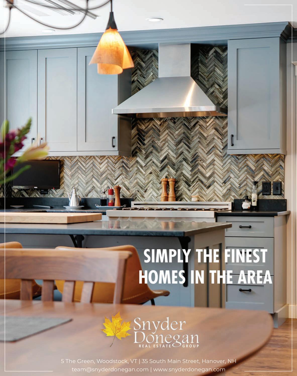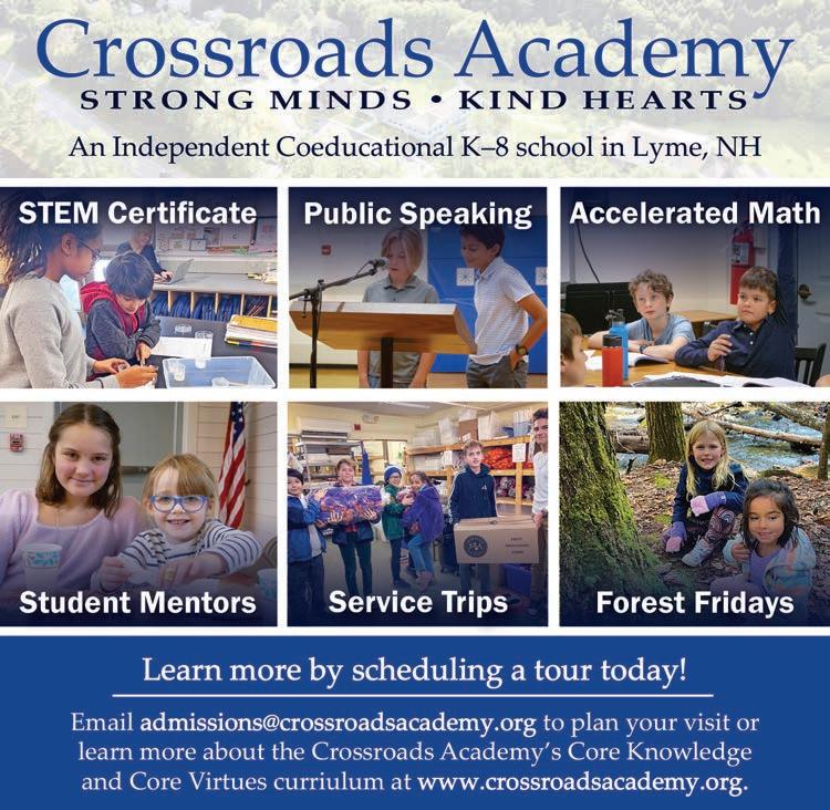 If you decide to go for a hike, why not check out some of the Lyme Conservation Commission’s lands? e organization has undertaken many projects in the area— often in conjunction with the Upper Valley Trails Alliance—to not only conserve the land but also to make areas more accessible for everyone, including building bridges and a gravel trail at Cha ee. Read about their good work beginning on page 36.