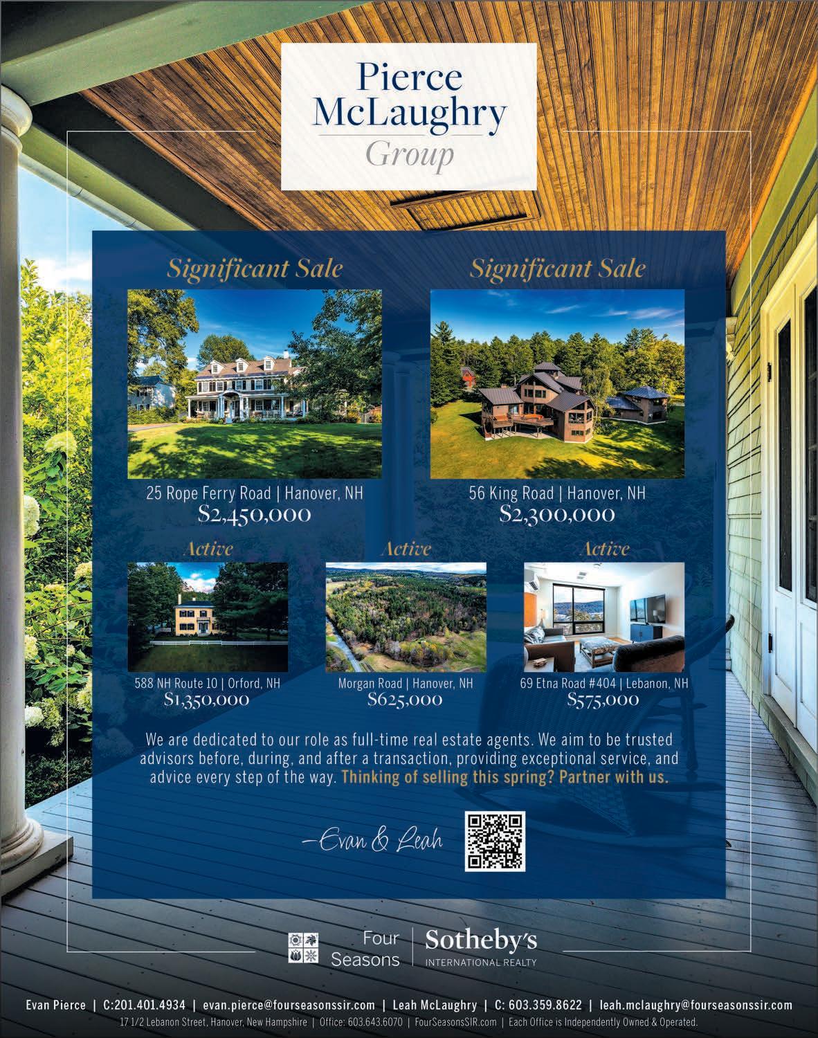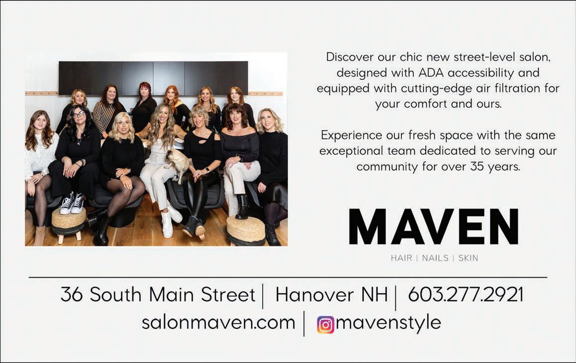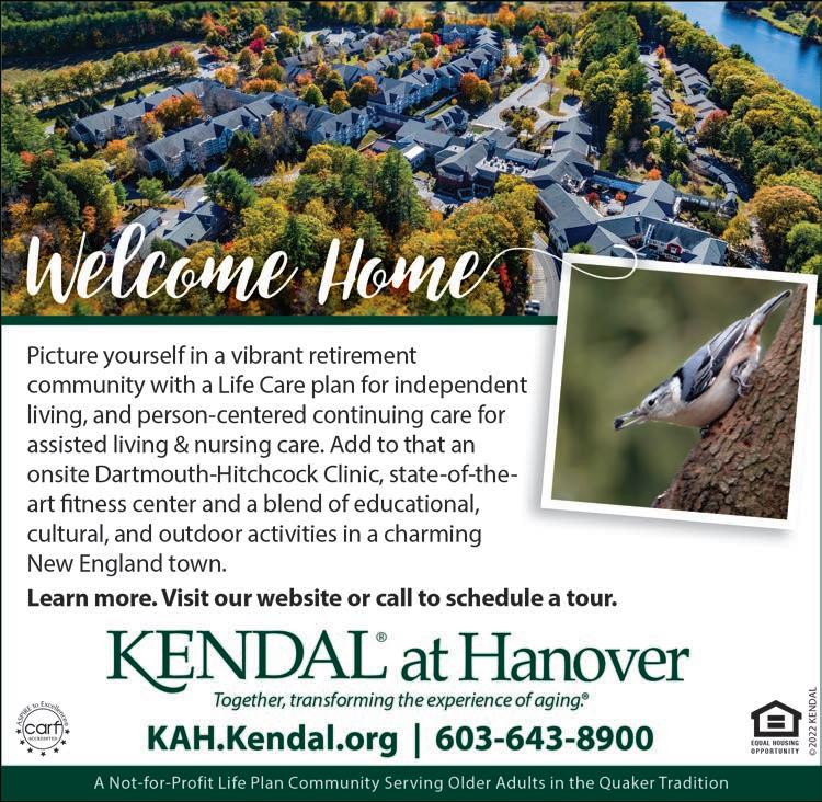 KEEP US POSTED. Here in Hanover wants to hear from readers. Correspondence may be addressed to: Letters to the Editor, Here in Hanover, 135 Lyme Road, Hanover, NH 03755. Or email us at: dthompson@ mountainviewpublishing.com. Advertising inquires may be made by email to rcfrisch1@ comcast.net. Here in Hanover is published quarterly by Mountain View Publishing, LLC ©2024. All rights reserved. Reproduction in whole or part is strictly prohibited. Here in Hanover accepts no responsibility for unsolicited manuscripts, artwork, or photographs.