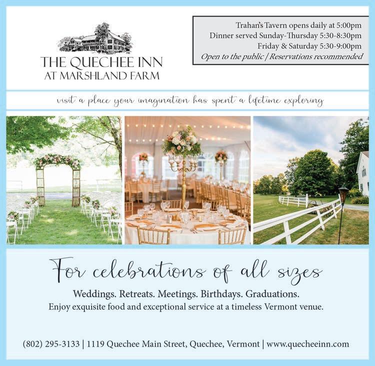 Another great way to take in the natural beauty of the area is to register to run in the Covered Bridges Half Marathon (page 44). The proceeds are donated to charity and also benefit local youth recreation programs in Woodstock, Hartford, Hartland, and Lebanon, so come out, lend your support, and join the fun on June 1.