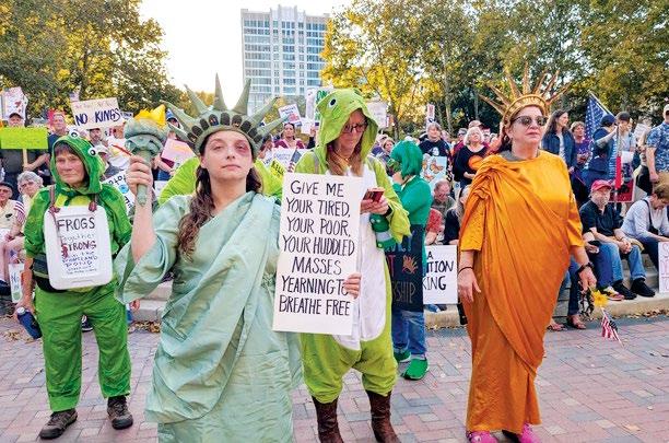 Thousands of people in Western North Carolina participated in the No Kings nationwide protest on Oct. 18. Many held signs remonstrating the Trump administration. For photos of the Asheville event, turn to Page 8. X