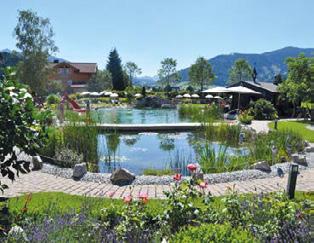 Privater Badesee im Gartenparadies Ponyhof Lichtdurchflutetes großes Hallenbad mit schwimmen ins Freie Röhrenrutsche und Trioslide mit Wasserpark Family und extra Adults Spa mit Panoramablick Kinderbetreuung im Kinderclub Perfekter Ausgangspunkt für Erlebnisse & Sportaktivitäten