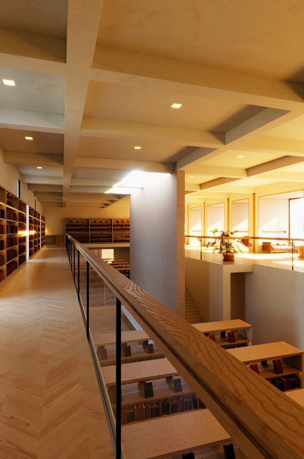 But comfort doesn't just mean personal space, it also includes circulation areas, which are often small and leave a feeling of oppression. My solution is to provide wide circulatory spaces to facilitate the flow within the library.