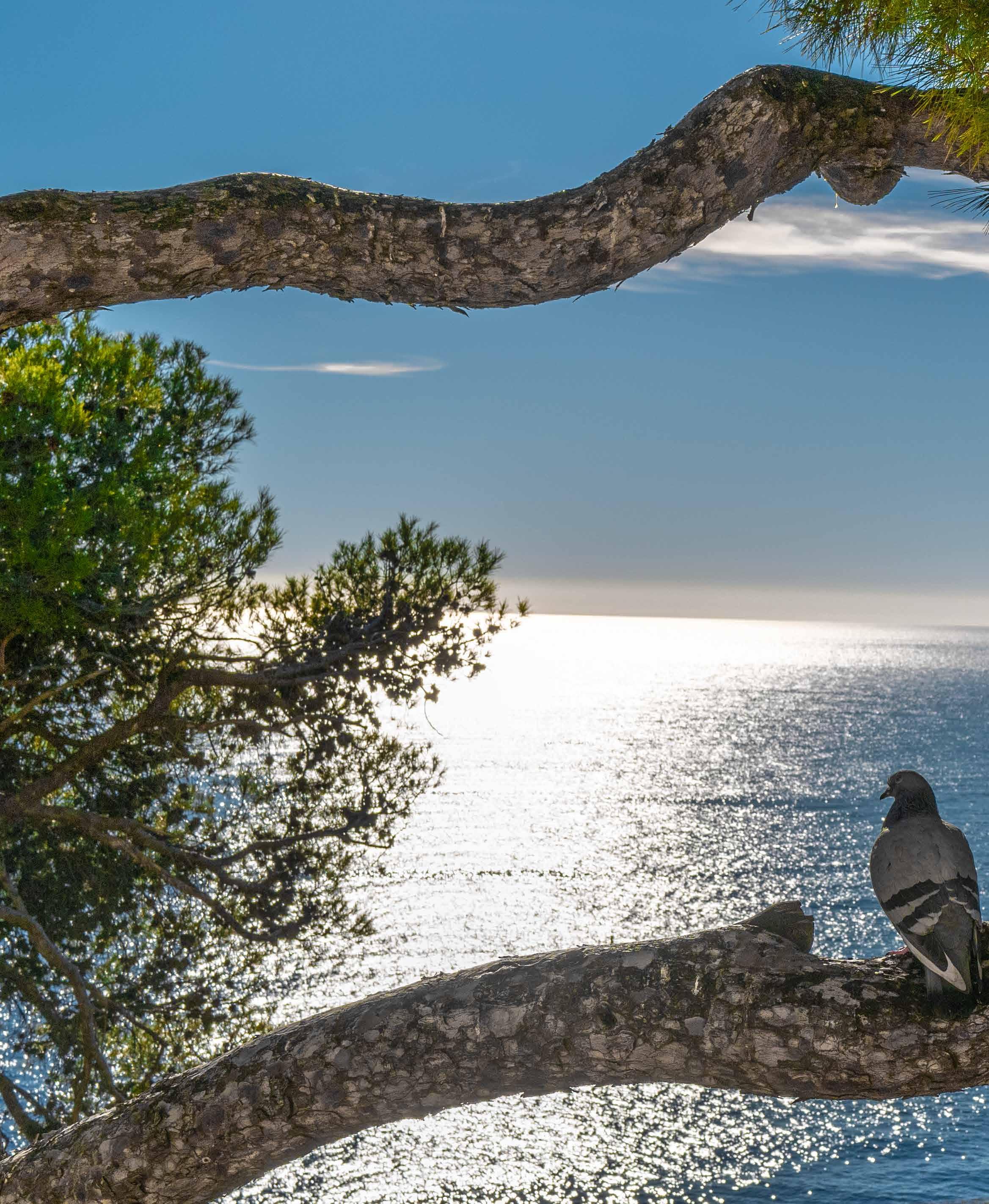 Overlooking the sea, the Saint-Martin Gardens on the Rock of Monaco offer dazzling views of both sky and sea, staged with century-old olive-trees and plays on light.