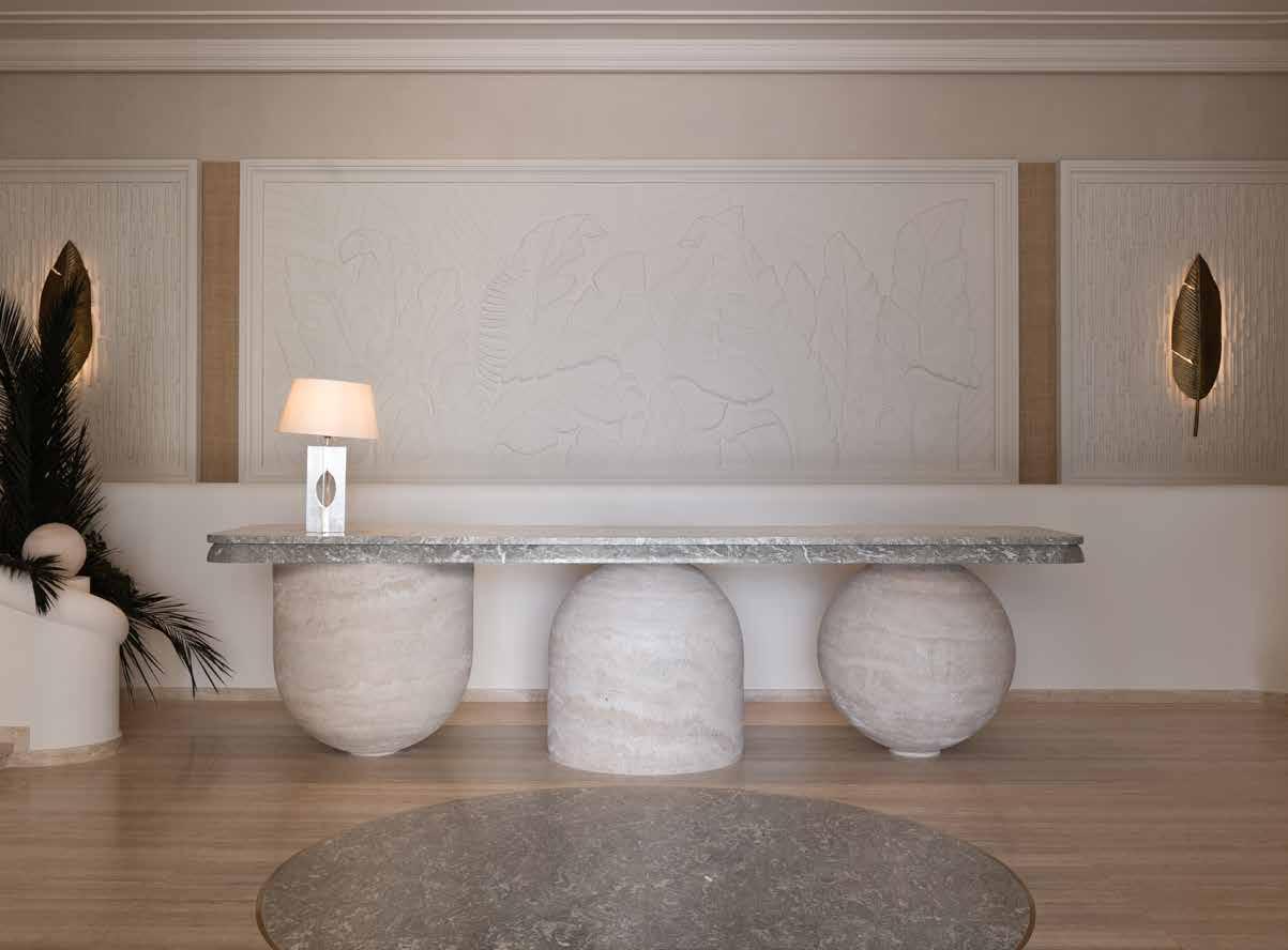 En mai, nous avons inauguré notre showroom-galerie au rez-dechaussée de notre siège à Cannes : un lieu de synergies entre art, design et artisanat. Pensé comme une expérience sensorielle, il accueille marques partenaires, pièces uniques, et objets issus de collaborations avec des artistes et artisans qui partagent notre sensibilité. L’ouverture a été marquée par une exposition dédiée à Emmanuelle Luciana, avec la Galerie Podgorny. Bientôt, nous y dévoilerons notre propre collection de mobilier, aux côtés d’artistes locaux et internationaux. Nous poursuivons également notre développement à l’international, avec l’ouverture d’un bureau à l’étranger et une ambition affirmée dans l’hôtellerie haut de gamme.