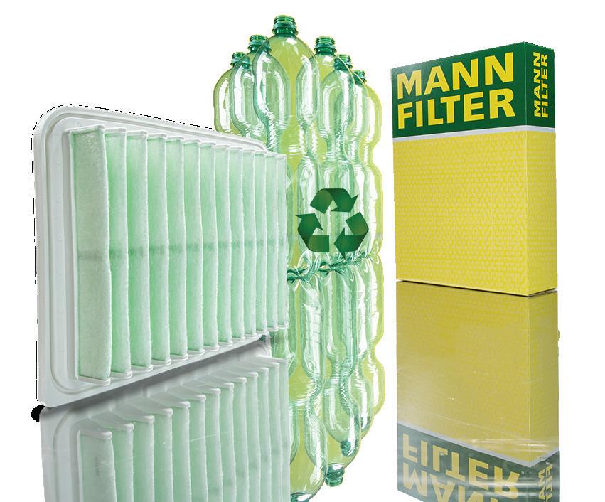 SOSTENIBILIDAD Ofrecemos en algunos casos productos fabricados a partir de materiales reciclados, como los filtros de aire MANN-FILTER hechos de botellas PET de plástico recicladocon una contribución significativa a la conservación de los recursos. Un metro cuadrado de medio filtrante contiene plástico reciclado de aproximadamente dos botellas de 1,5 litros. Ade -
