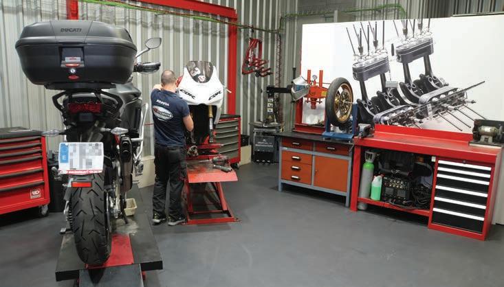 El taller combina diagnosis, mantenimiento y reparación para modelos de alta gama como esta Ducati Multistrada y la Honda CBR. Precisión y respeto por cada moto.