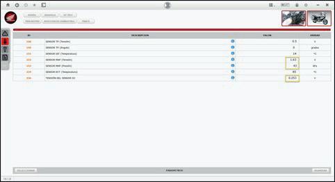 En primer lugar, se debe conectar el equipo de diagnóstico Texa. En el software IDC5 Bike, seleccionar el modelo descrito y hacer clic en el botón de Global Scan (Imagen 1). Esta función de IDC5 permitirá realizar una prueba breve de todas las unidades equipadas y consultar la memoria de averías de cada una.