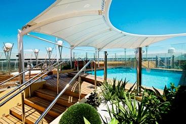 Solarium esclusivo dedicato con piscina, vasche idromassaggio e bar