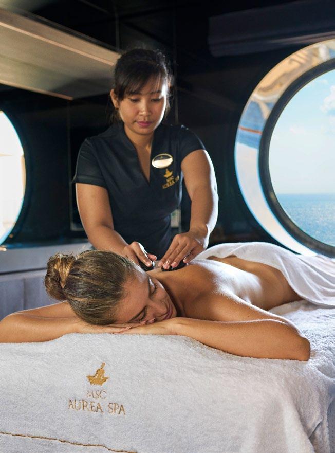 Después de un entrenamiento en el gimnasio de alta tecnología, estarás listo para descansar y relajarte en el suntuoso MSC Aurea Spa. Expertos masajistas balineses te sumergirán en los antiguos conocimientos y rituales de Oriente. Es una experiencia única e inolvidable que revitaliza tu cuerpo, mente y espíritu, infundiéndoles una relajante sensación de paz.