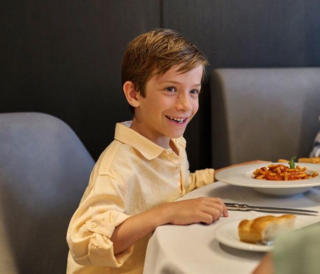 Podrás deleitarte con la mejor gastronomía en el bufé, donde encontrarás pizza y mozzarella recién hechas, o en los elegantes restaurantes que sirven platos exclusivos. También hay una gran variedad de entretenimiento con espectáculos y clubes para niños que ofrecen diversión sin fin.