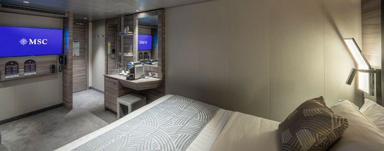 Guests on our newest ships can also enjoy all the exclusive comfort and service of the MSC Yacht Club in an interior suite. Each has its own sitting area, large wardrobe and a bathroom with a shower.