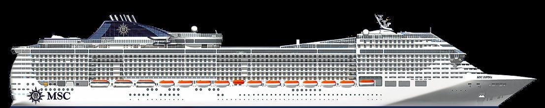 DECKS 18, included 14 for guests LIFTS 26, included 17 for guests (2 panoramic and 1 for the MSC Yacht Club) VOLTAGE (IN CABIN)