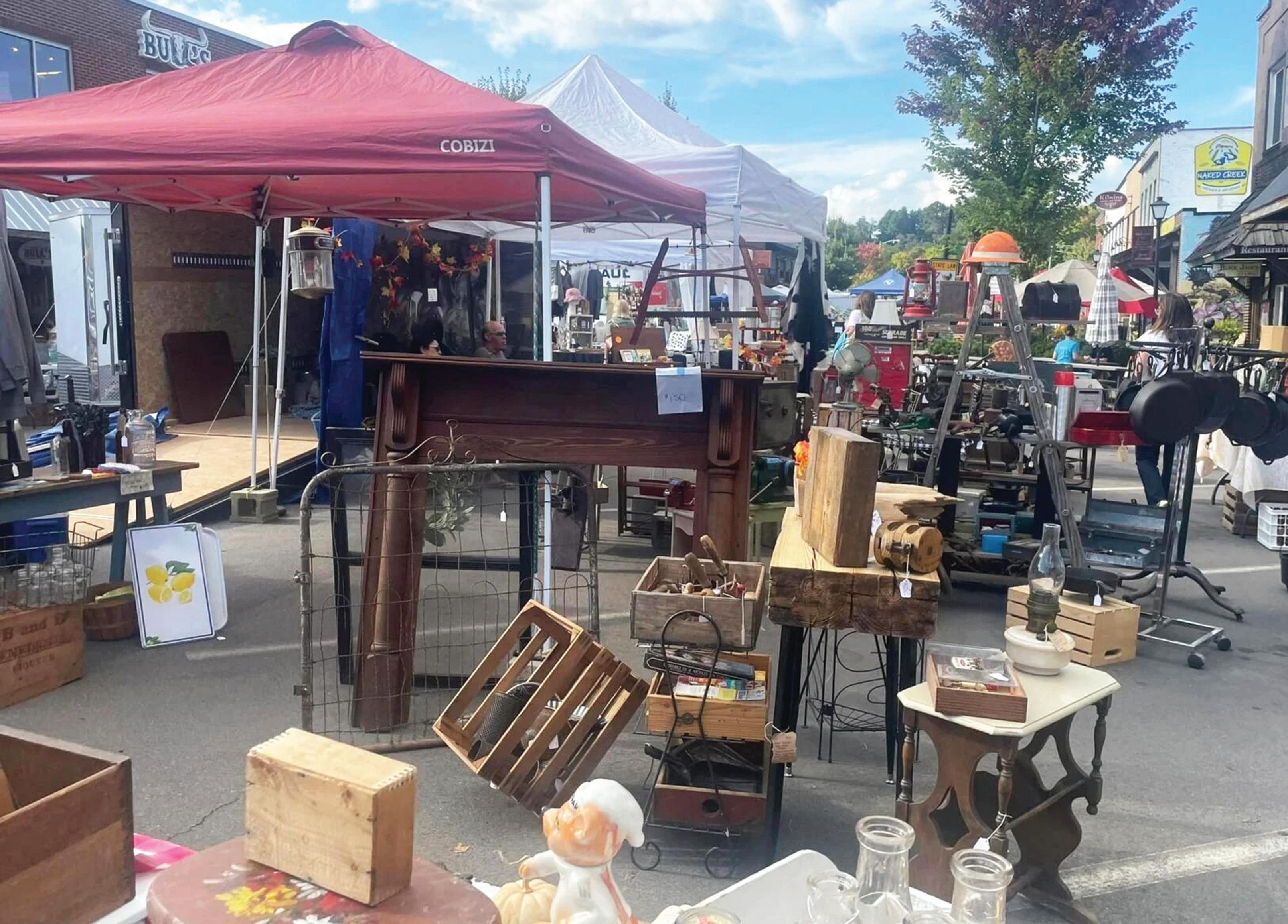 During the festival, the streets of downtown North Wilkesboro are filled with over 300 arts and crafts, 50 food concessions, and three different music stages featuring Blue Grass, Country, Folk, Gospel, and Appalachian Heritage. Cloggers, folk dancers, rope skippers, and square dancers provide additional entertainment venues for festival goers. Appalachian Heritage crafts are highlighted, such as woodcarving, chair making, soap making, pottery throwing, and quilting.