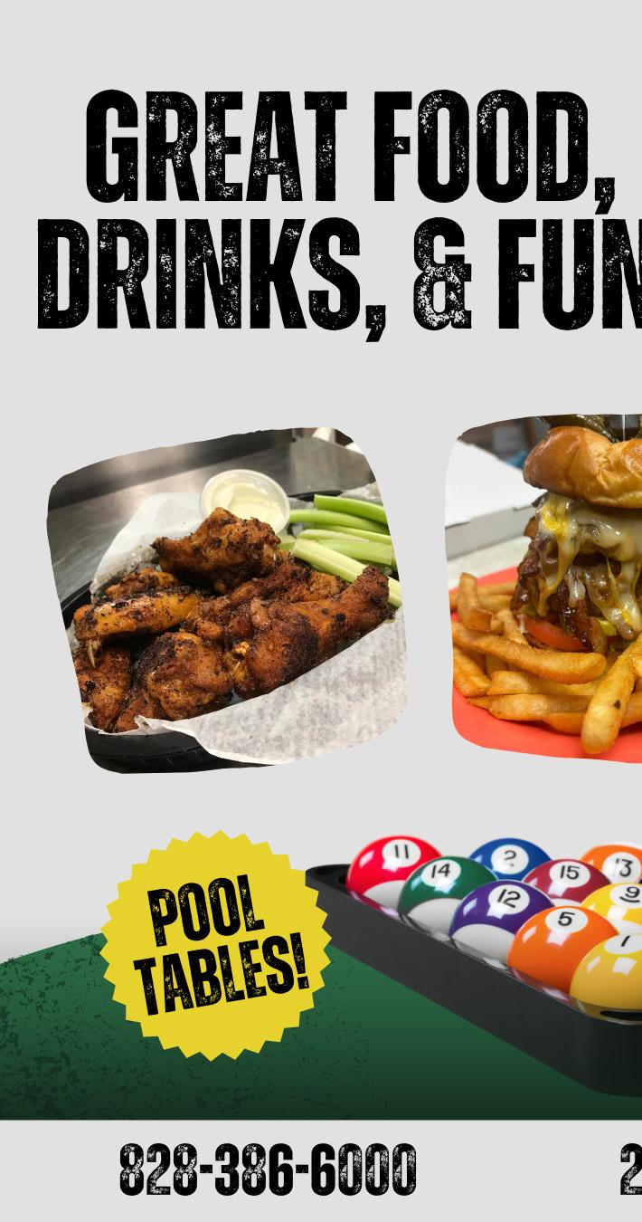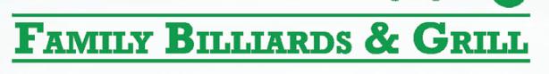 pooltables have always been considered as topnotch andare maintained in immaculatecondition,but theirmain businessistheir qualityfood &beverage operation, of whichclosetohalfof whichistake-outorders. The majority of regulars come fortheir quality, consistent andaffordablefood offerings, although many have neverplayedpoolhere. The room features numerous large screen TV’s generallyfeaturing sports or weather during thedaytime andsportingeventsat night. Chef BrianAndersonpreparesdaily specials Monday throughFriday, which virtuallyalwayssellout.FamilyBilliards is asmall operation that caters to and depends largely on theirloyal following of regulars,but ever yone is welcome as a family friendlyrecreationIentertainment anddiningoptionfor localsaswellas touristsvisitingthe highcountry Family Billiards: ATradition of ExcellenceSince1996