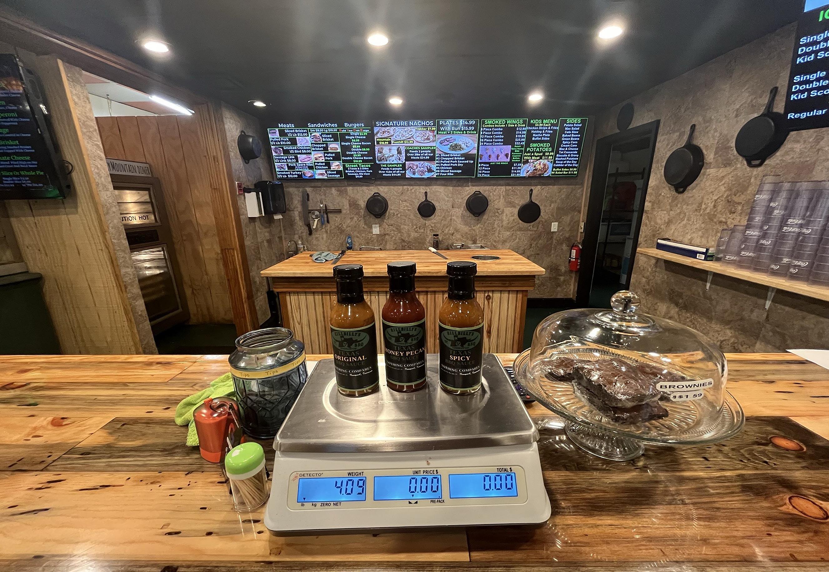 The front counter’s menu offers a wide variety of food choices. Hillbilly’s has also introduced its own barbecue sauces that can be purchased.