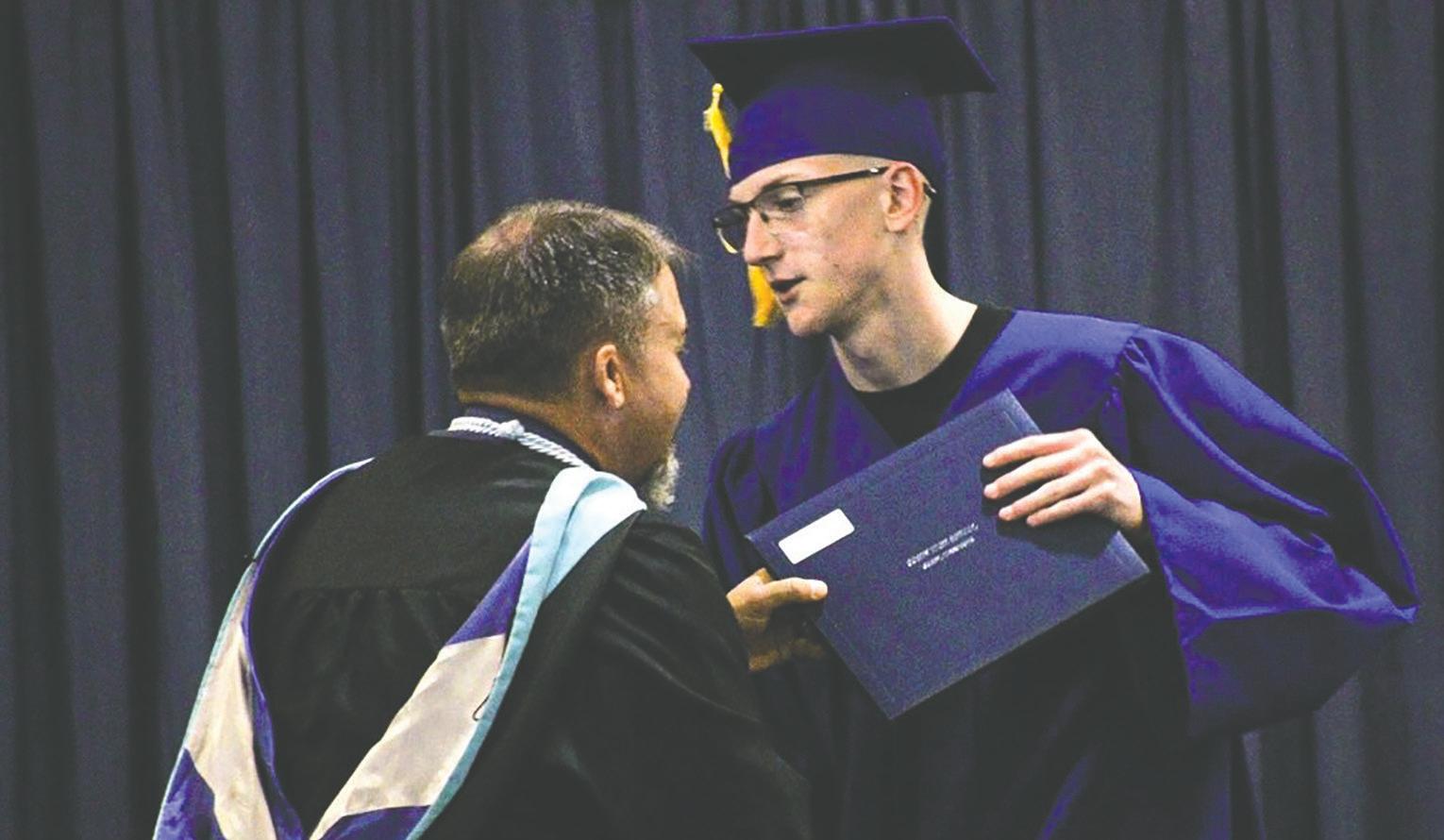 PHOTO BY KATHY HEMSWORTH Ezekiel Cortez was the recipient of the Judge James Kenneth Porter Memorial Scholarship. He is shown with Doug Brooks, of the Cocke County Education Foundation.