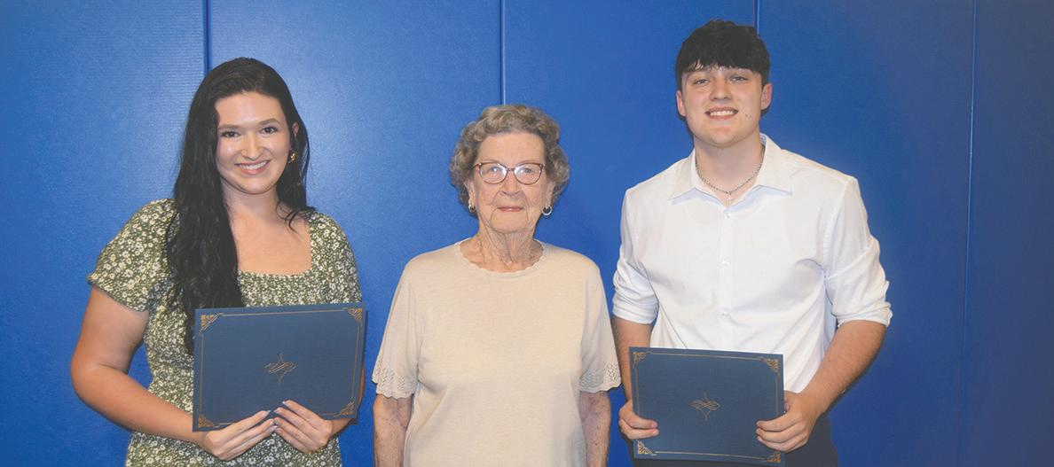 Two Cocke County High School graduates received Carolyn Ramsey scholarships during the Education Foundation Scholarship Reception. Connor Atkins, who plans to attend Carson-Newman University, and Syndney Ball, who plans to attend Walters State Community College, are shown with Carolyn Ramsey, center.