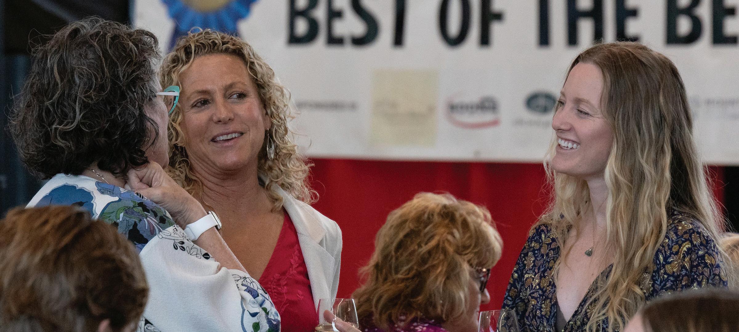 PHOTO BY DAWN O’NEAL-SHUMATE, LIGHT BY DAWN STUDIOS Valerie Midgett and Ahimsa Izlar of Neighborhood Yoga chat before the awards ceremony. PHOTO BY MOSS BRENNAN