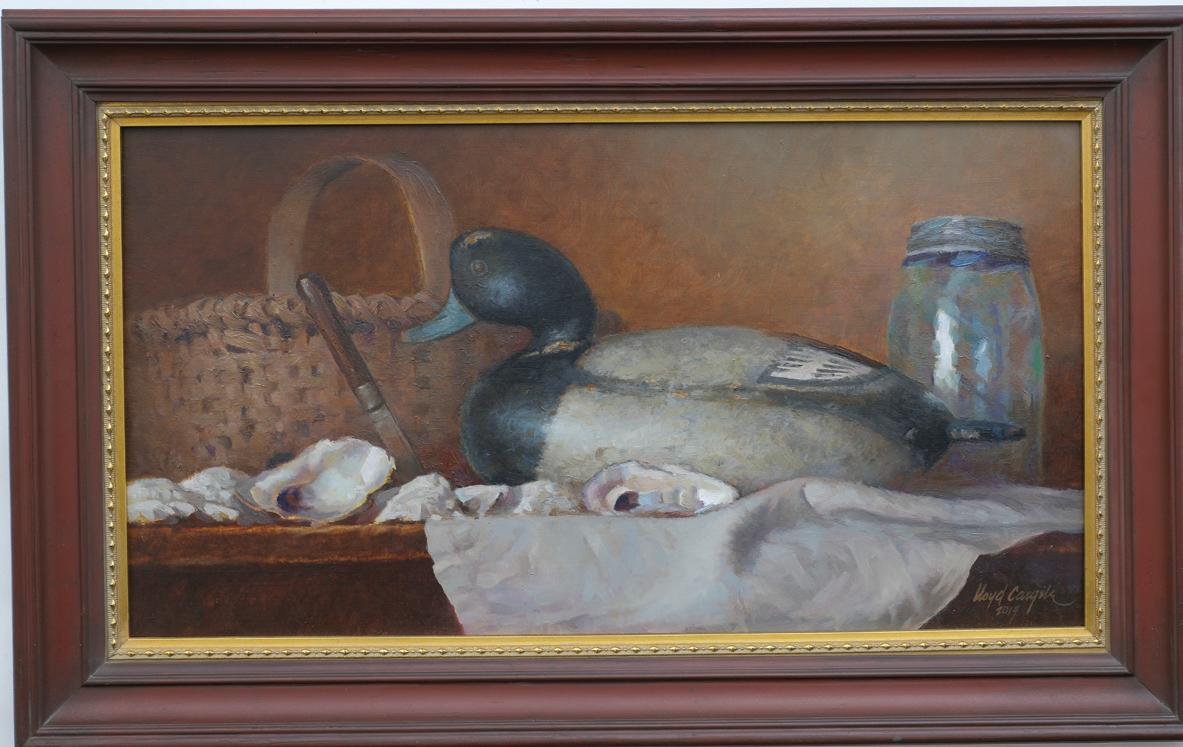 • 10AM - 7PM: The Harry Walsh Artifacts will be set up near the auction hall with a small taste of what will be on exhibit at the High School. Veteran Waterfowl Hall of Fame collectors Henry Stansbury, C. John Sullivan, and Kim & Ronnie Newcomb will be exhibiting decoys by Ira Hudson and Charles Nelson Barnard, as well as historical hunting accessories and tools of the trade.