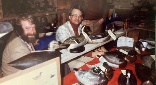 Donna Tonelli, respected author of decoy and collectibles reference books, celebrated her and her husband’s half-century-long friendship with the Haids, which grew from their common love of hunting and decoys: “My husband Joe first met Alan Haid at the Midwest Decoy Collectors Show in Aurora, Illinois in 1971 and sold him a Bert Graves canvasback. Not long afterward, Alan arranged a trip to our home in Spring Valley with two of his friends, Tom Winstel and Bob Dyer; they were known as The Cincinnati Kids.” This first visit led to regular excursions into the field, in pursuit of quality decoys and their live counterparts. Both avid waterfowl hunters, supporters of waterfowl habitat conservation, and tireless decoy lovers, Alan and Joe would help one another source choice examples from around the country. Joe estimates that he sold no less than 500 decoys to Alan over the decades.
