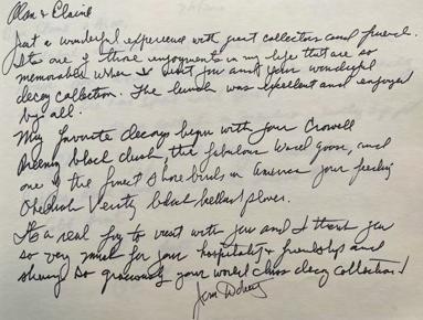 Guyette and Deeter is honored to have been entrusted with the responsibility of disbursing the Haid collection to the next generation of passionate collectors. We have taken this important duty very seriously and have attempted to put as much thought, planning, and hard work into the divestment as Alan and Elaine put into the creation of this fabulous collection. We believe the Haids would get great enjoyment knowing that their cherished birds were going to be studied, pursued, enjoyed, and shared for generations to come.