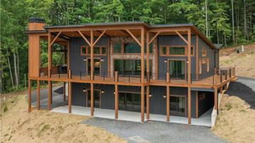 UNDER CONSTRUCTION Mtn Modern w/ YR views, 275’ of creek frontage & an “Beach Entry Gunite pool!” On 6.2 acres.4BR/4.5BA. Primary suite features a private porch & a spa-like BA. 2nd ensuite on main, covered porch, & ext. fplc. Open terrace level w/ a wet bar, game area, & 2 addt’l BR/BAs. STR allowed. $1,599,000. MLS: 330226