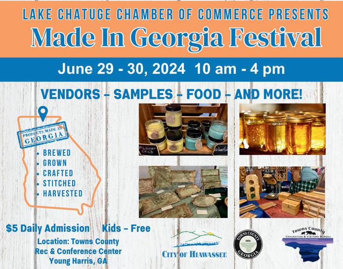 For advertising information, contact Mountain Lake Publishing 888.896.2412 ©2024 MOUNTAIN LAKE PUBLISHING, INC. www.mountainlakeguide.com FREE SPRING/SUMMER2024 Lodging - Attractions - Restaurants - Recreation - Shopping - MAPS Spotlight On Rabun County page 4 Road trip To Hike Western nc page 16