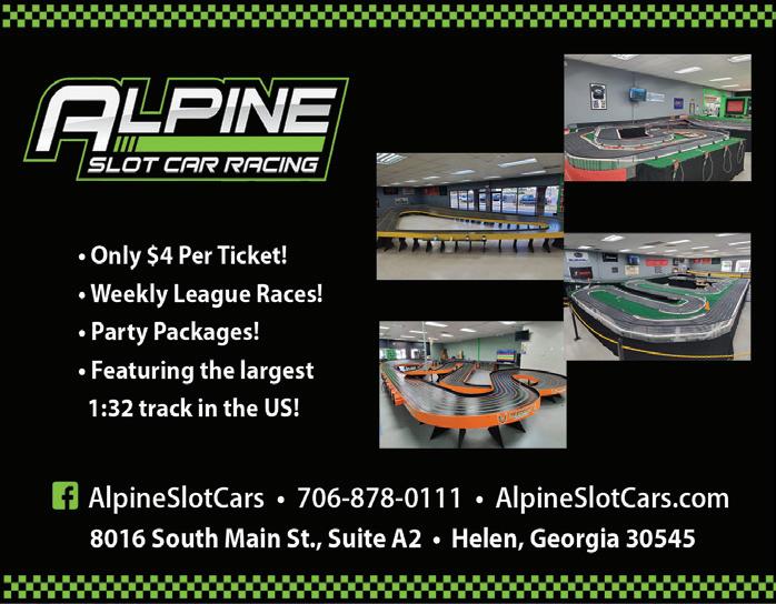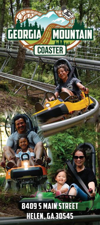 Helen Spring / Summer 2024 | www.mountainlakeguide.com VACATION GUIDE in the Mountains | 21 FIRST ALPINE COASTER IN GEORGIA Fast and Fun • Family Friendly georgiamountaincoaster.com CALL FOR HOURS 706-878-1347 8409 S Main St • Helen, GA 30545 info@georgiamountaincoaster.com 570 Downtown on the Chattahoochee River ~ Easy walk to shops, restaurants, and attractions ~ Riverfront Rooms with Private Balconies ~ Fireplace / Whirlpool Suites ~ Heated pool ~ Meeting/Party rooms 706-878-2271 33 Munich Strasse • Helen, GA www.Helendorf.com 18 643 We offer locally made arts and crafts throughout our Gallery and Gift Shop. Visit us today to see the history of Helen in our theater presentation. Admission is always Free to the public. Sunday - Saturday 12pm - 5pm Art Classes Available throughout the week (706) 878-3933 • helenarts.org 25 Chattahoochee Strasse • Helen,GA