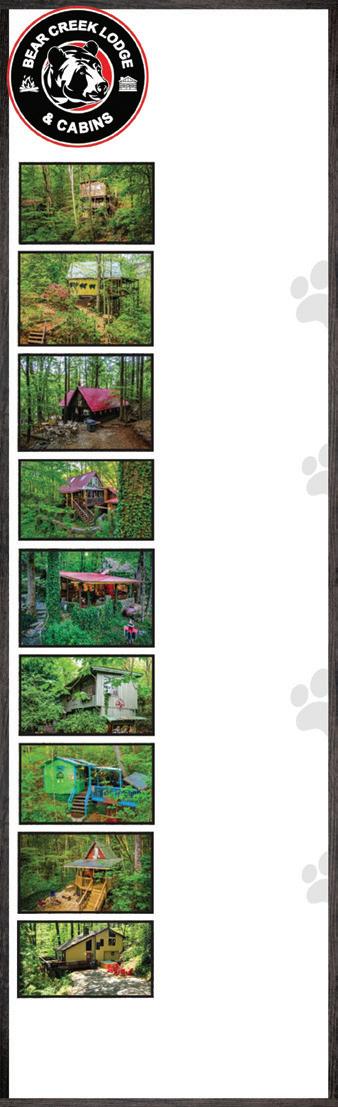 Helen Spring / Summer 2024 | www.mountainlakeguide.com VACATION GUIDE in the Mountains | 23 8669 N. Main STreet Helen, GA 30545 706.878.2357 lindenhausimports.com AuthenticGermanand WorldwideImports! 187 Imports from Europe and Around the Globe! • Beer Steins, Clocks, & Nutcrackers North GA’s Fine Clock Dealer for 28 years • German Cuckoo, Kit Cat, Rhythm Motion & Mantels • Largest BIER STEIN Dealer in the Southeast USA • Trolls from Norway Authentic Russian Nesting Dolls PET FRIENDLY CABINS WALK TO DOWNTOWN VACATION RENTALS CHATTAHOOCHEE RIVER OPEN YEAR ROUND Call or Text: 706-773-1040 219 Escowee Dr., Helen, GA 30545 BEARCREEKLODGEANDCABINS.COM THE TREEHOUSE Private Hot Tub / Overlooks Waterfall Grand Porch / Flat Top Grill / Gas Fire Logs 2 Queen / 1 Twin / Sleeps 5 RIVERVIEW CABIN Private Hot Tub on Deck / River Mountain View / Fire Pit / Flat Top Grill Lofted / Spiral Staircase 1 King / 1 Queen & Twin / Sleeps 5 GOLD MINERS CABIN Private Hot Tub Mountainside w/Fire Pit Flat Top Grill / Gas Fire Logs 1 King / 1 Queen / 5 Twins / Sleep s9 FISHERMAN’S CABIN Private Hot Tub / Overlooks River Deck / Flat Top Grill / Lofted A-Frame 1 King / 1 Queen / 2 Twin / Sleeps 6 THE LOG CABIN Overlooks River / Flat Top Grill Built in 1928 / Hand Hewn Beams Gas Log Fireplace 1 King / 1 Full / Sleeps 4 THE LODGE Hot Tub & Pool Table / Fire Pit Grand Porch / Flat Top Grill 3,500 sq.ft. / Sleeps 13 / 5BR / 4BA COZY COTTAGE Priavet Hot Tub on Porch over Natural Spring Creek / Walking Trail to Cabin 1 Queen / Sleeps 2 HILLTOP LOFT Mountain View / Lofted A-Frame / Fire Pit Flat Top Grill / Private Hot Tub on Deck 1 Queen / 3 Twins / Sleeps 5 HIDEAWAY CABIN Private Hot Tub / Mountainside w/Fire Pit Large Deck / Flat Top Grill 3 Kings / 2 Full BA’s / Sleeps 6 633 Enjoy Beautiful Mountain Scenery During Customized Tours for: Wineries, Breweries, or Distilleries Our Goal is to Create Your Perfect Day! contactus@explorenorthga.com (762) 230-9463 • explorenorthga.com Sipping Wine + Warm Firepit = Cozy! 652