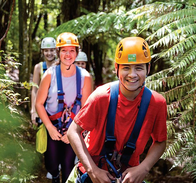 excitement of ziplining with a guided exploration of native forest, giving students the chance to apply classroom learning to realworld contexts across science, ecology, geography, tourism, business studies, physical education and cultural studies. Both locations cater for a wide range of group sizes, with discounted education rates and flexible scheduling to fit around timetables or broader itineraries. Programs can be tailored to support specific learning outcomes, and EcoZip staff work with teachers to co-design content that complements desired learning outcomes or objectives.
