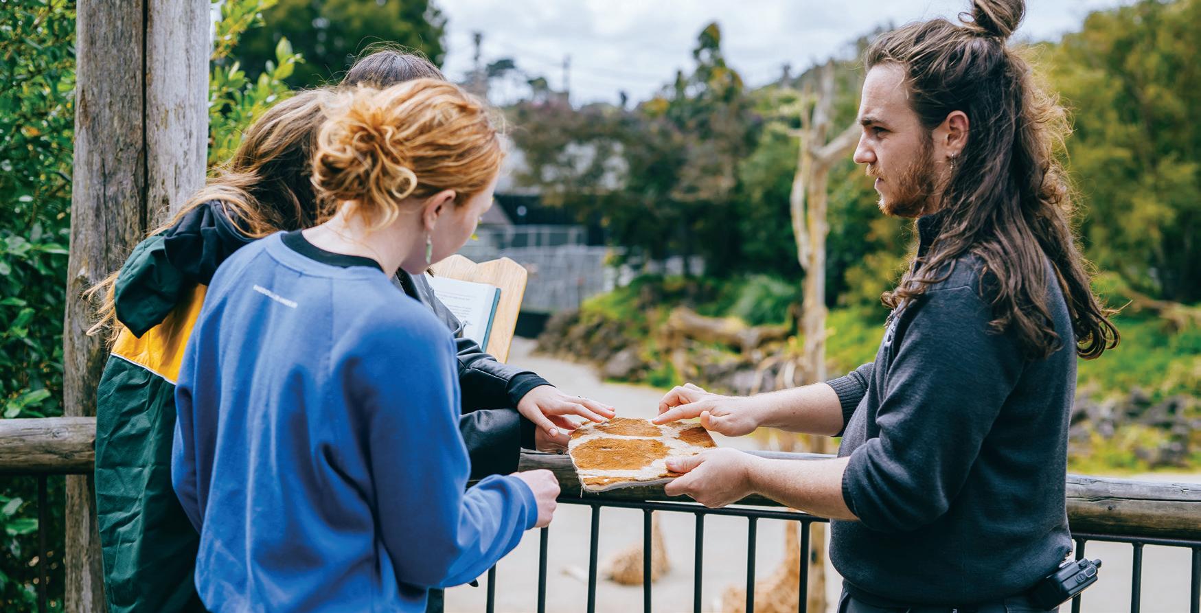 The Conservation Learning team at Auckland Zoo off er specialised school sessions to kickstart conversations around kaitiakitanga to help kaiako/ teachers shape class or school values for the year—like respect, responsibility, and stewardship.