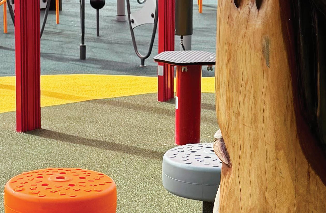 “Adding diff erent textures and colours can make a playground more exciting and inclusive,” Mr Williams said. “Using a mix of materials—like sand, rubber, synthetic grass, bark, timber, and natural stone—not only