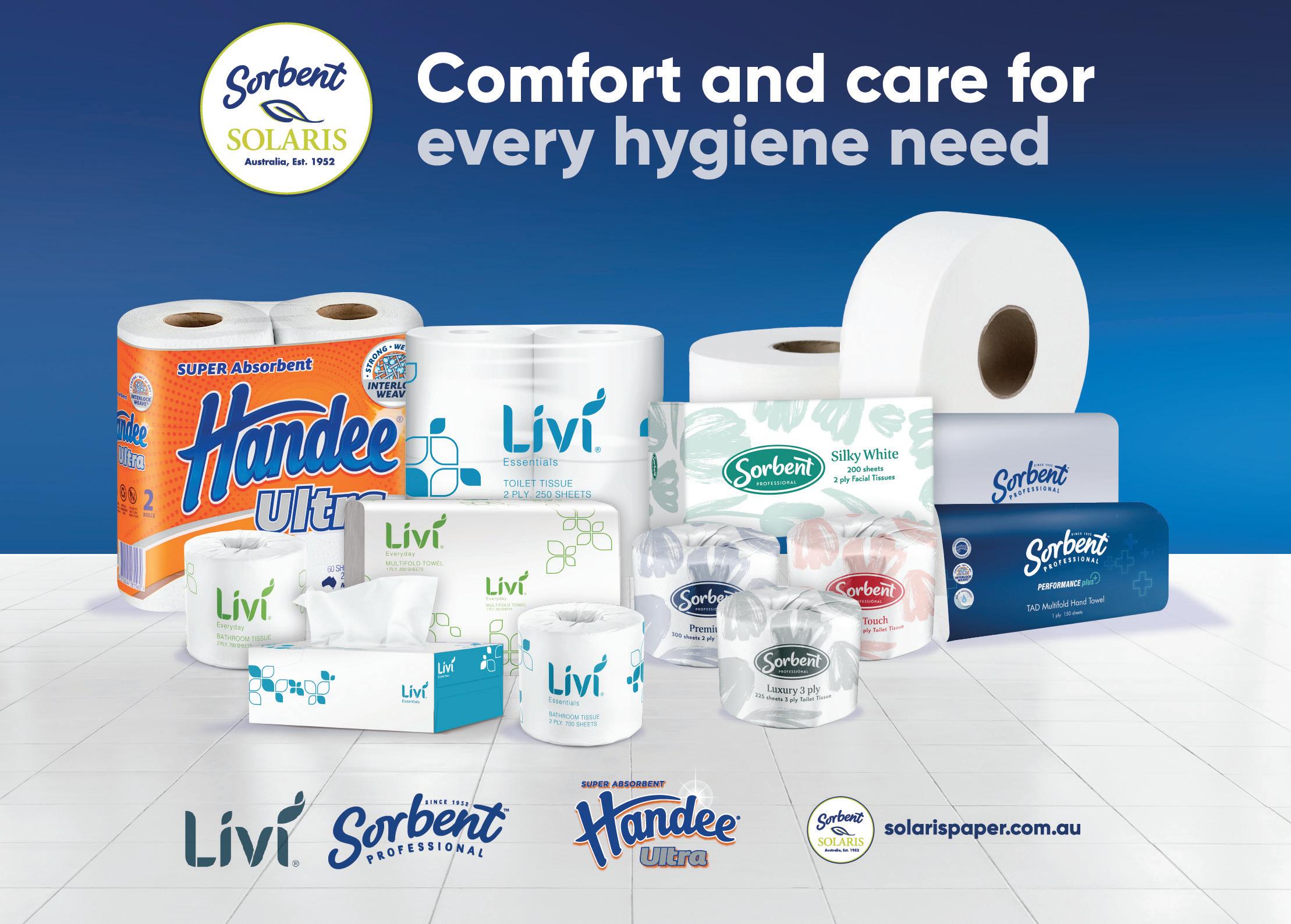 At Sorbent Solaris Paper, we’re proud to support schools with products that help make those everyday moments better. Our Sorbent Professional and Livi ranges – featuring toilet tissues, facial tissues, hand towels, soaps and sanitisers are designed to keep school environments clean, comfortable, and ready for learning.