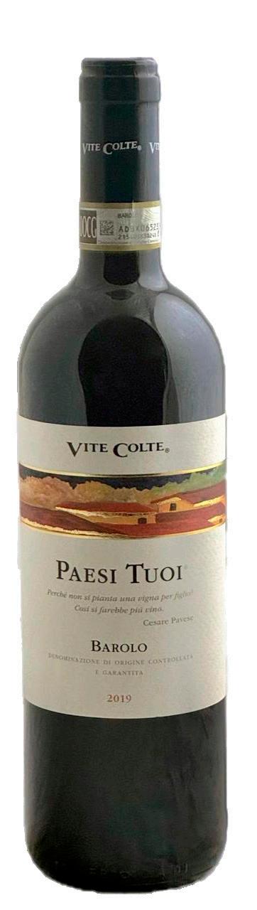 BAROLO d.o.c.g “Paesi tuoi”. Un Barolo elaborado con uvas 100% Nebbiolo con un añejamiento de 24 meses en barricas de robles franceses. Se presenta con color rojo rubí, aromas complejos, fruta roja madura, violeta, regaliz, especias, bosque o sotobosque. Seco, firme, taninos elegantes con buena estructura y final largo. Ideal con guisos, embutidos intensos, setas, trufa, sin duda el rey de los vinos del Piamonte.