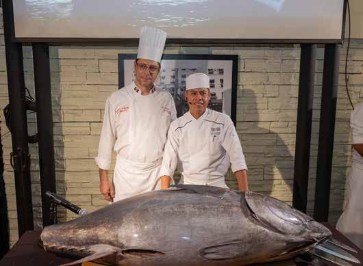 En el marco de los 25 años del restaurante Au Pie de Cochon en el país, los festejos se mantendrán en lo que resta del año. Recientemente se llevó a cabo una original cena “a cuatro manos” entre el chef de casa Frédéric Lobjois y el chef ejecutivo Abraham Leonardo Vega, del reconocido restaurante japonés Tori Tori, que también cumple 25 años de su creación: un total de 50 años deleitando paladares con platillos que han conquistado a los sibaritas que los visitan. Durante la cena de celebración, se llevó a cabo un espectacular ronqueo de un atún aleta azul.
