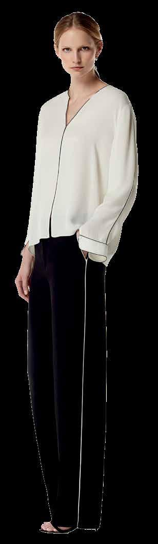 Las dualidades de la colección se expresan a través de tejidos y técnicas especializadas, comenzando con un renacimiento de la lana característica de la firma que integra prendas esenciales con una suave sensualidad.
